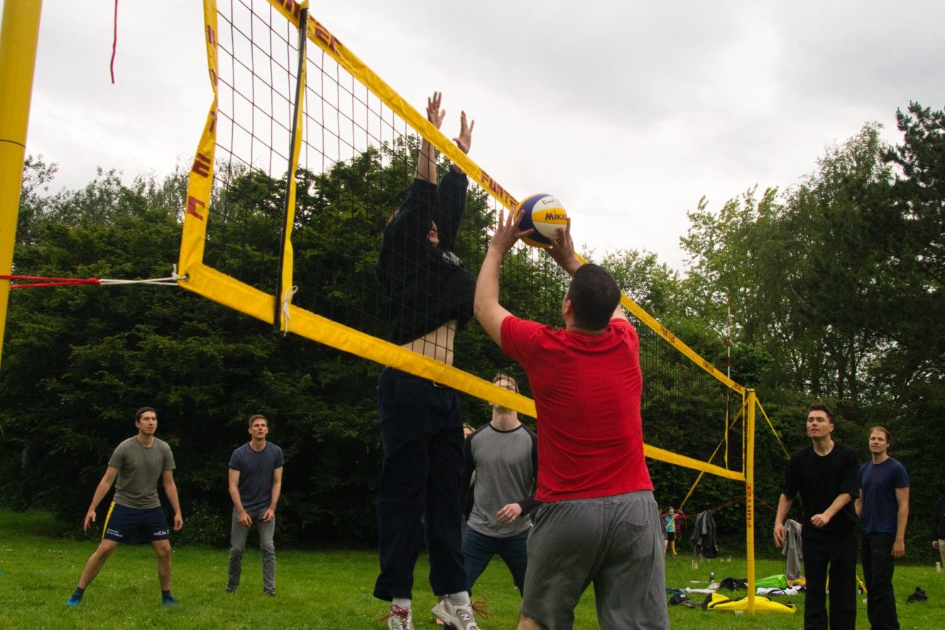 Nach all diesen Formalitäten standen ein leckeres Grillen und etwas Sportlichkeit im Vordergrund. So haben beispielsweise die Volleyballer ein Rasen-Volleyballfeld aufgebaut sowie ein Wikingerschach angeboten. Zudem durften alle Vereinsmitglieder, wenn sie denn wollten, die Trocken-Sprunganlage der Wasserspringer ausprobieren und in die Schaumstoffgrube springen. Vielleicht überlegt sich jetzt der ein oder andere die Sportart zu wechseln? Zu guter Letzt wurden riesige Wasserbälle ausgepackt, in die die Sportler hineinsteigen und über das Wasser "laufen" konnten. Sie wurden von Groß und Klein in Dauerschleife benutzt und es kamen sogar Wettrennen zustande.